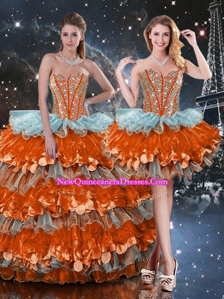 Organza Sweetheart Sleeveless Lace Up Beading and Ruffles and Ruffled Layers Ball Gown Prom Dress in Multi-color#QDDTA112001-8PRT